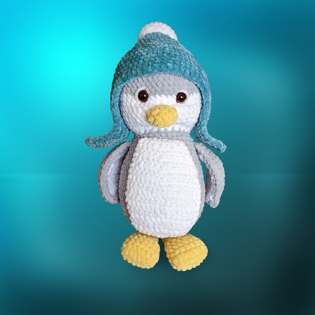 NR44. Rankų darbo Pingviniukas su ledu, pagamintas iš 100% hipoalerginių siūlų: